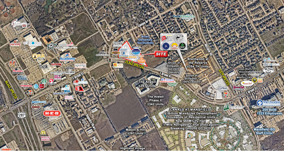 📍Located on Broad Street between Matlock Rd & Cannon Dr, directly across from The Canals at Mansfield – a $1 Billion Mixed-Use Development • Includes the new $65M Mansfield City Hall • Breaking ground Q3 2025